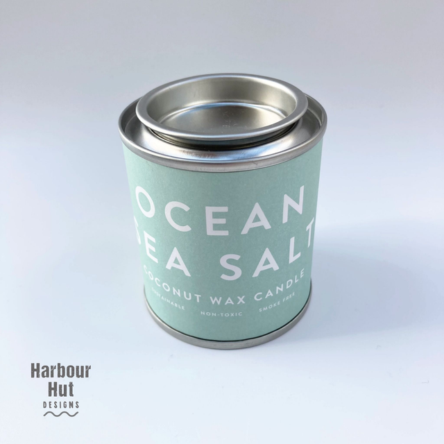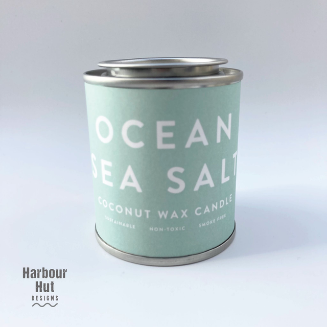 Ocean sea salt fragrance candle in a small 'paint pot' tin with lid.