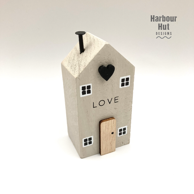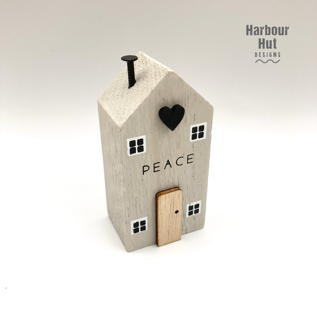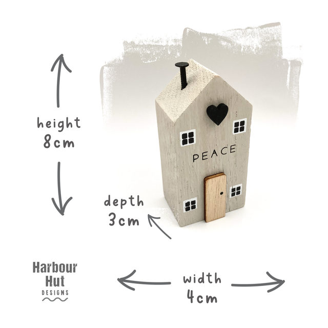 Choice of either 'Love', 'Home' or 'Peace' printed on the front of the house.
