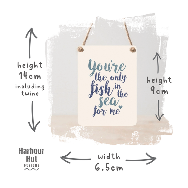 The words printed on the sign are ‘You’re the only fish in the sea for me’ which hangs from rustic twine.