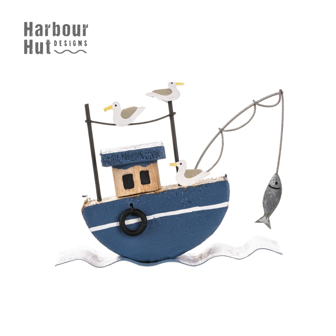 Quirky little fishing boat on its return to harbour with catch - hijacked by seagulls!!